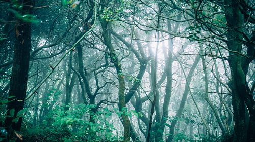 The day was finally shifting into evening, the sun disappearing in the west. The forest was now dark with a navy blue and growing pitch black.